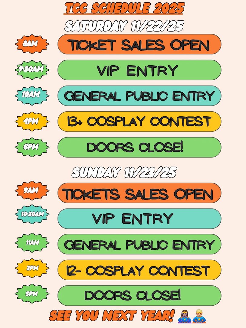 📅 Dates: November 22–23, 2025 📍 Location: Tyler Comic Con (Tyler, TX) 💵 Entry: $10 total ($5 venue + $5 per bracket) 👨👩👧 Parent/Child Bracket: FREE entry